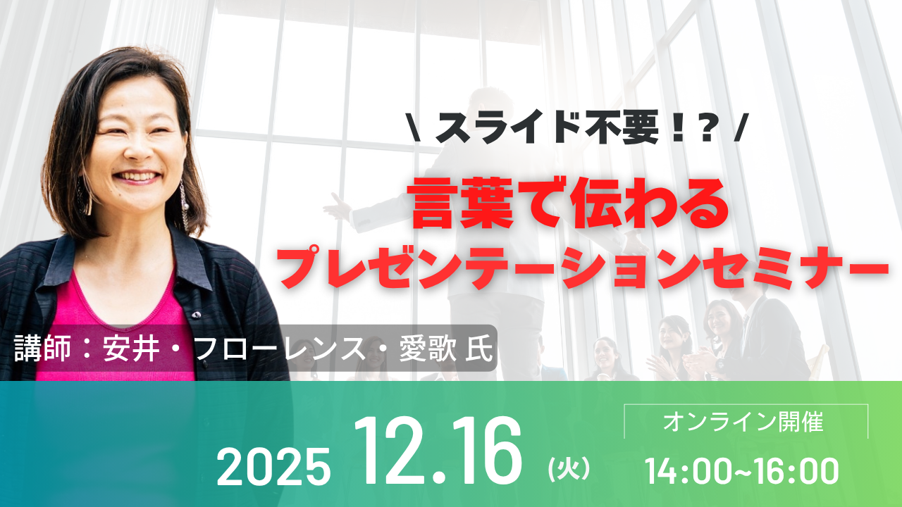 自分の言葉で相手を動かすプレゼンスキルを磨きたい方、ぜひご参加ください。